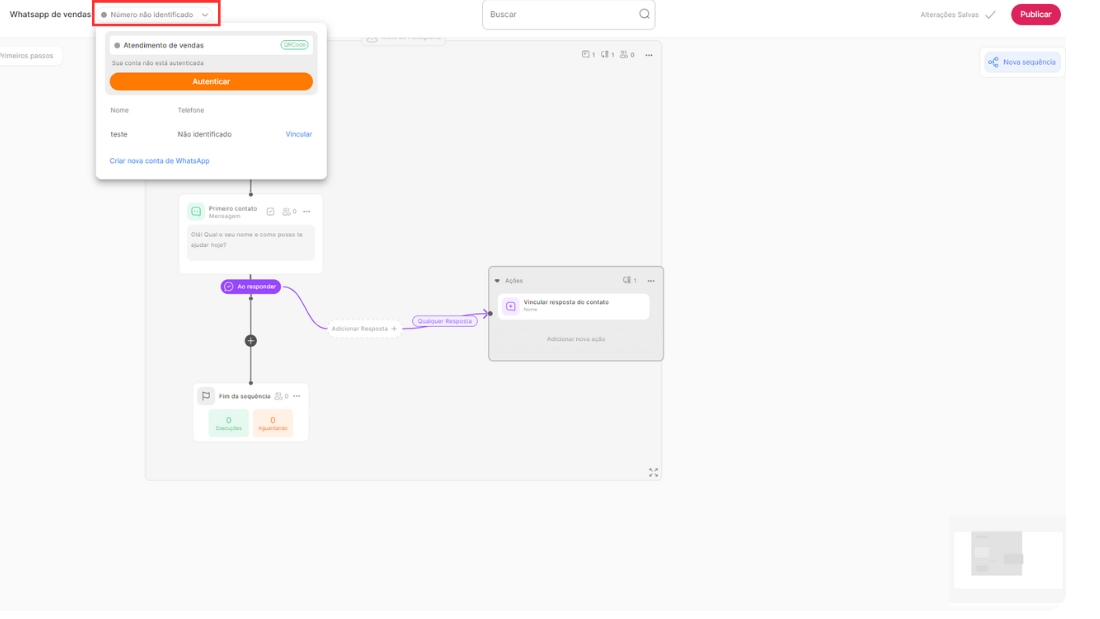 # Whatsapp: Autenticação de conta diretamente pela tela do fluxograma