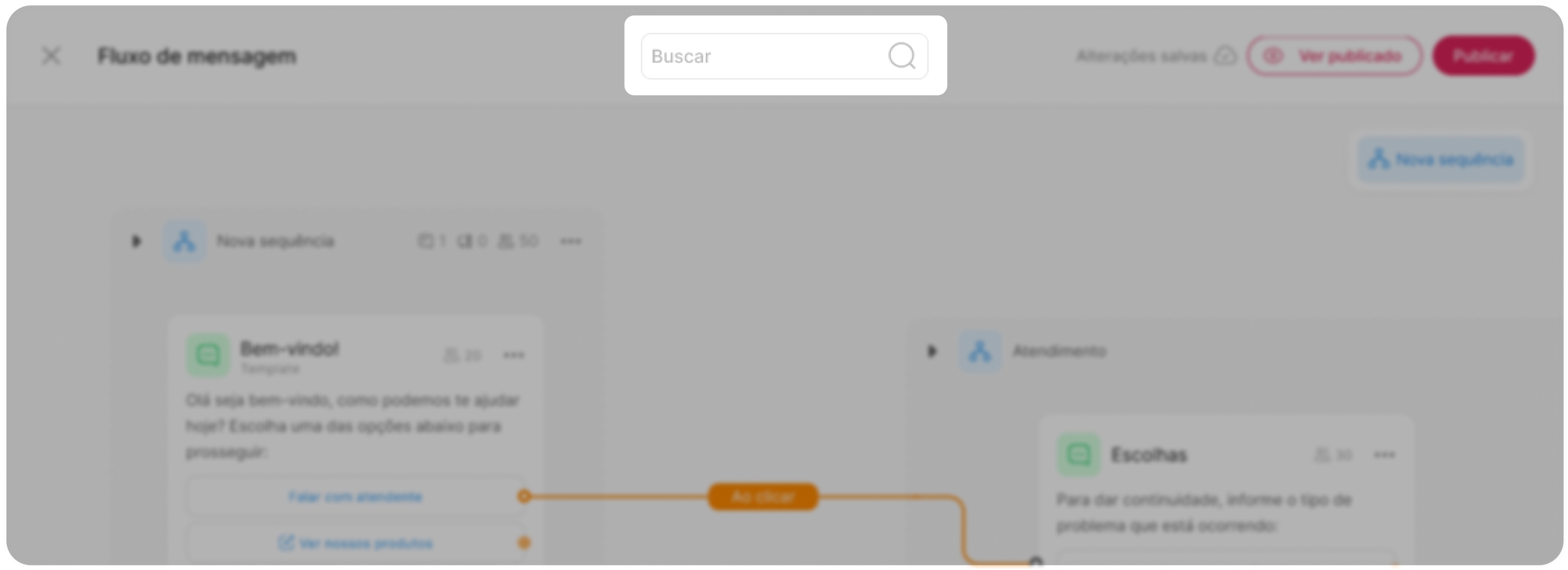 Máquinas de whatsapp podem ser configuradas com automações complexas e muitos elementos na tela. Agora é possível buscar por uma mensagens ou sequências utilizando títulos ou o conteúdo do texto.